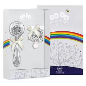 Das taktile DO DO "Teddybär" -Geschenkset mit einem Schnuller und einem Silber Rassel wurde entwickelt, um Feinmotorik und Geschmacksknospen bei Babys & Kleinkinder zu entwickeln. Der taktile Schnuller DO DO besteht aus Sterlingsilber und hochwertigem Silikon. Der silberne Schnuller hat eine taktile Oberfläche für die Entwicklung von Sprachrezeptoren und den Saugreflex. Mit diesen Gegenständen entwickelt sich das Baby jeden Tag aktiv und wächst gesund.