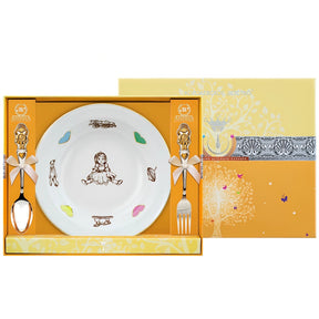 Silberbesteck & Porzellanteller Mädchen gold 3-teilig
