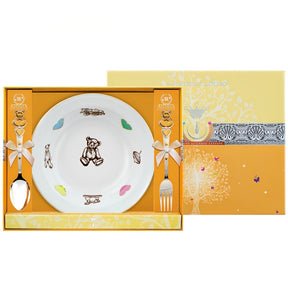 Silberbesteck & Porzellanteller Teddybär gold 3-teilig