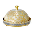 Sie lieben erlesene Naschereien wie zartschmelzende Pralinen? Wenn Sie sich diese Leckereien gönnen, dann gönnen Sie sich auch eine stilvolle Art diese zu servieren. Unsere Silberschale mit Deckel aus 925er Silber wäre perfekt dafür. Das edle Stück kommt in Form eines runden Tabletts daher, auf das ein passender Deckel in Form einer Käseglocke aufliegt. Der Teller steht auf kleinen Füßen und ein kleiner goldener Knauf ermöglicht das leichtere Anheben und Absenken des Deckels. Doch nicht nur die Formgebung der Silberschale überzeugt zu Hundert Prozent, sondern auch die wunderschönen, aus echtem Gold getätigten Handgravuren.