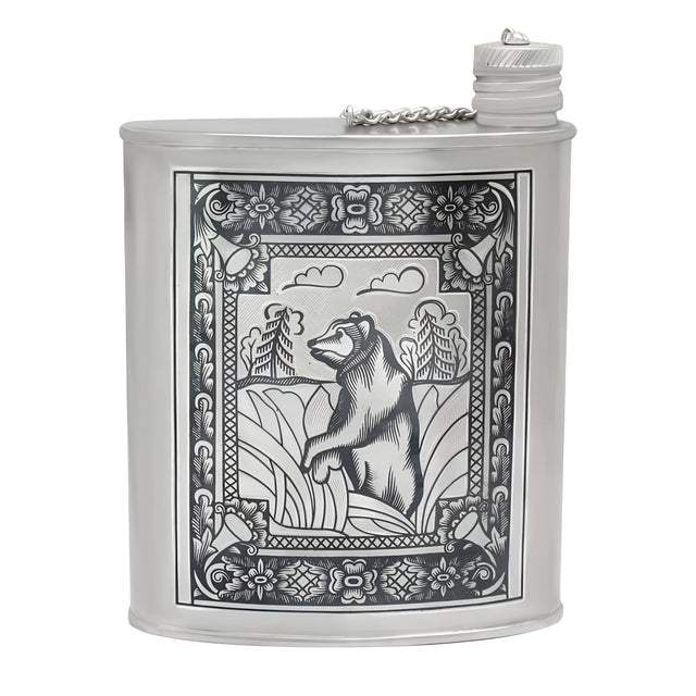 Edler Flachmann aus Silber mit Niello Design „Bär“ 260ml