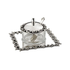 Dieses exquisite Set besteht aus 3 Teilen: Einem eleganten Serviertablett, einer atemberaubenden Honigdose mit Deckel und einem filigran gearbeiteten Silberlöffel. Jedes Stück ist aus 925er Sterlingsilber und Kristallglas gefertigt, was dem Set einen Hauch von Eleganz und Exklusivität verleiht.