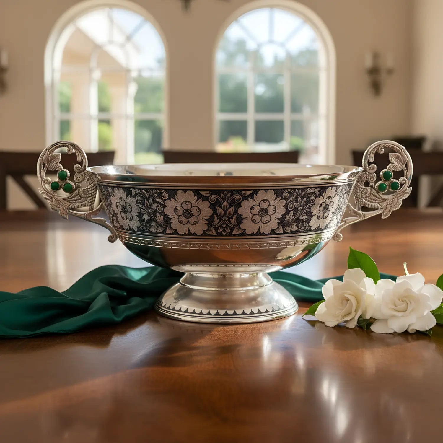 Diese Schale wird weniger genutzt – sie wird inszeniert. Als zentrales Objekt auf einer festlichen Tafel, als Kunstobjekt in einem luxuriösen Salon oder als dekoratives Highlight in einer Vitrine. Sie eignet sich perfekt als Hochzeitsgeschenk, Jubiläumsgeschenk oder Sammlerstück. Viele Besitzer nutzen sie als Obst- oder Pralinenschale, als kunstvolles Arrangement für Blumen oder als symbolische „Schale für Zwei“ in Partnerschaften.