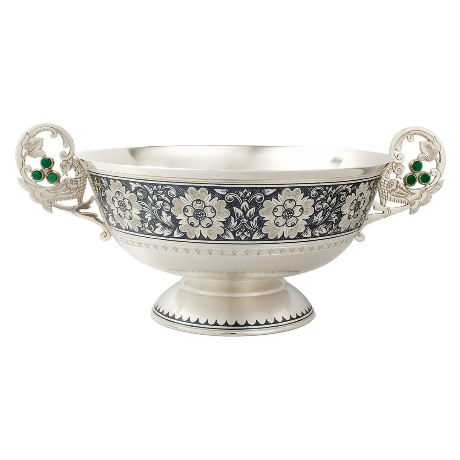 Konfektschale "Für Zwei" – Russisches Niello-Silber 925 mit Chrysopras
