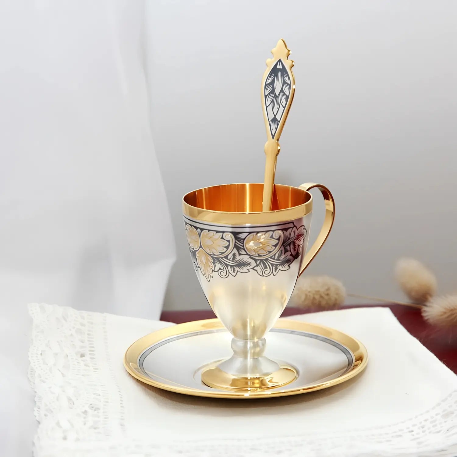 Geschenkset Kaffeeservice Hopfen – 2 Personen, 925 Silber Niello & Vergoldung