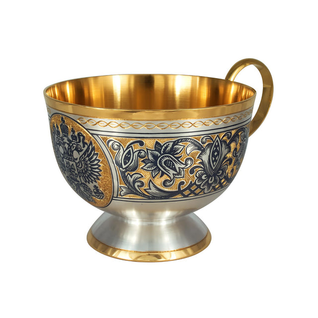 Noble Teetasse aus Teeservice "Herrscher" in einem ausgezeichneten Niello-Design mit Vergoldung
