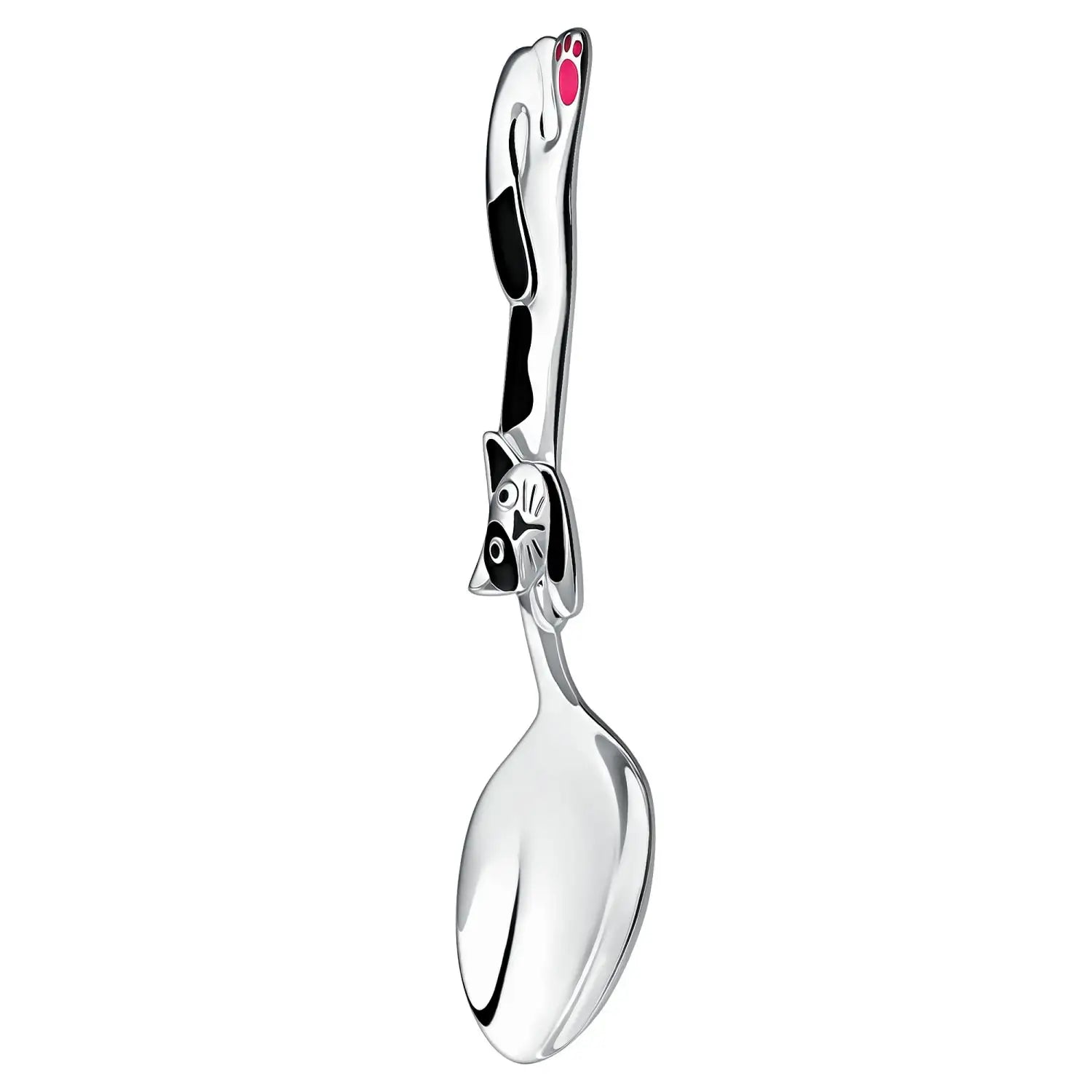 Babylöffel 925 Silber & Emaille – Kater Schwarz-Grau
