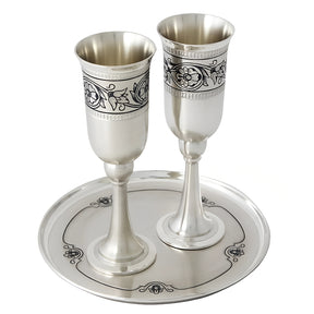 Exklusives Schnapsgläser Set mit Serviertablett im Niello Stil
