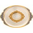 Das noble Tablett in 925 Sterlingsilber und Vergoldung 0,5 Mikron ist ein echtes Kunstwerk, das sich perfekt als außergewöhnliche Dekoration oder Luxusgeschenk zur Hochzeit eignet. Mit einem Gewicht von 584 Gramm besticht dieses atemberaubende Tablett durch seine einzigartige Goldverzierung in der Mitte, die aufwändig von Hand graviert wurde.