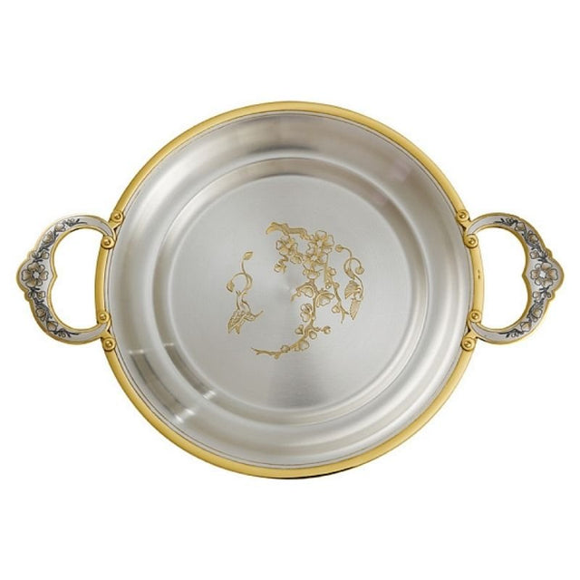 Das SAKURA Silbertablett mit Henkel aus 925er Sterlingsilber und Vergoldung ist ein wahrhaft luxuriöses Serviergeschirr, das sowohl Funktionalität als auch Schönheit vereint. Mit seinem edlen Niello-Design und den eleganten Henkeln wird dieses Serviertablett zum Mittelpunkt jeder Tischdekoration.