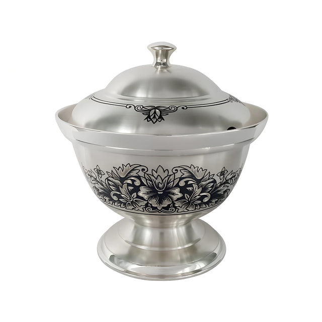 Wir präsentieren Ihnen diese exquisite Zuckerdose, die aus feinstem 925er Sterlingsilber handgefertigt ist. Mit ihrem eleganten Design und der hochwertigen Niello-Verzierung ist sie ein echter Blickfang und verleiht jedem Teeservice eine besondere Note von Luxus und Raffinesse.