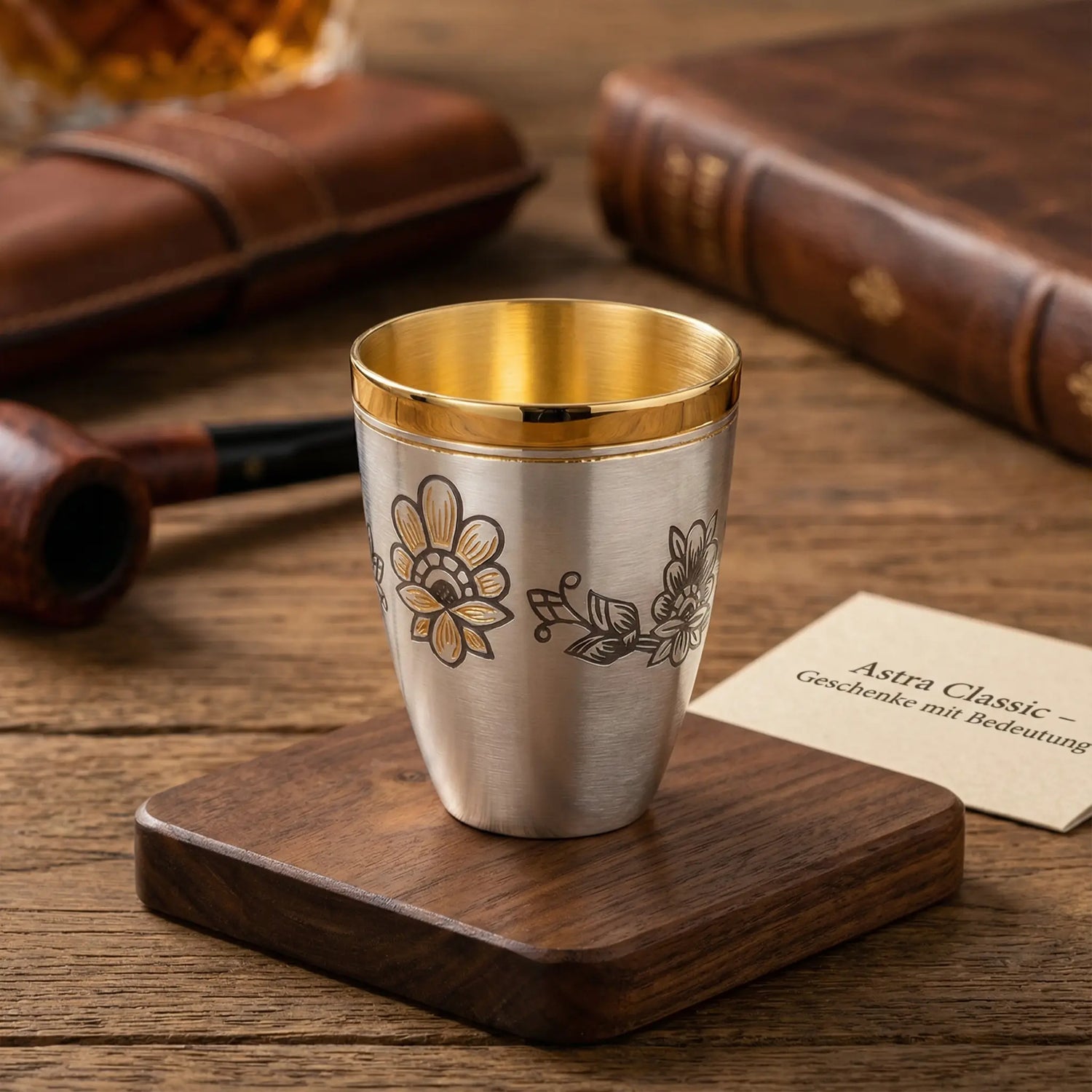 The Astra Classic liquor set is the perfect gift for those who appreciate fine spirits: for fathers on Father's Day, for colleagues on their retirement, for friends on milestone birthdays (50th, 60th, 70th), for grooms on their wedding day, for business partners on their anniversary, or as a thank-you gift for special people. The set comes gift-wrapped and immediately conveys that this isn't just any glass, but a complete ensemble crafted from 925 sterling silver, representing over 100 years of manufacturing tradition.