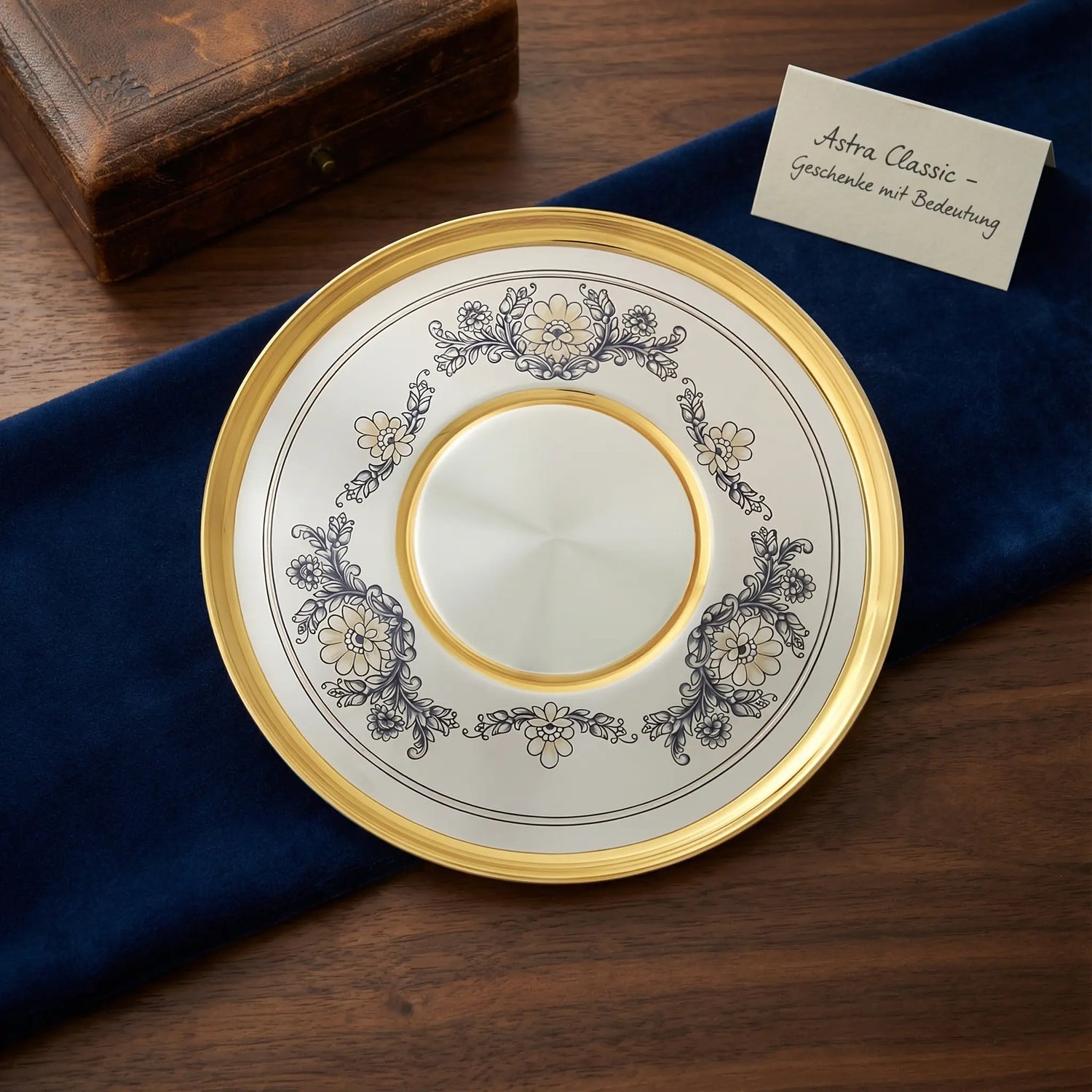 The Astra Classic 4-piece spirits service set is no ordinary gift. It's the ultimate choice for those who understand that fine spirits deserve more than just any glass – they deserve a complete ensemble, complete with a tray crafted from solid 925 sterling silver, fully gilded, hand-engraved, and produced by a manufactory with over 100 years of tradition. Every time the tray graces the table, every time cognac flows from the decanter, every time a toast is raised with friends, this set demonstrates that true moments of enjoyment deserve the perfect setting. Four pieces, niello floral arrangements, fully gilded details – for those who know that the right set makes all the difference.