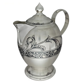 We invite you to discover our precious coffee and teapot, crafted from genuine 925 sterling silver. This exquisite piece embodies luxury and elegance with its fine craftsmanship, hand-engraving, and striking niello pattern.