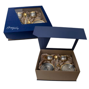 Teacup set with spoon and saucer for 2 people with unique Niello decoration