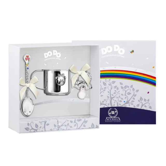 Order our 925 silver baby gift set with a girl's bear motif today and add a touch of elegance to your baby's special moments. Create unforgettable memories with this extraordinary gift.