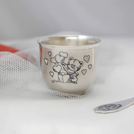 Baby cup with handle 925 silver teddy bear