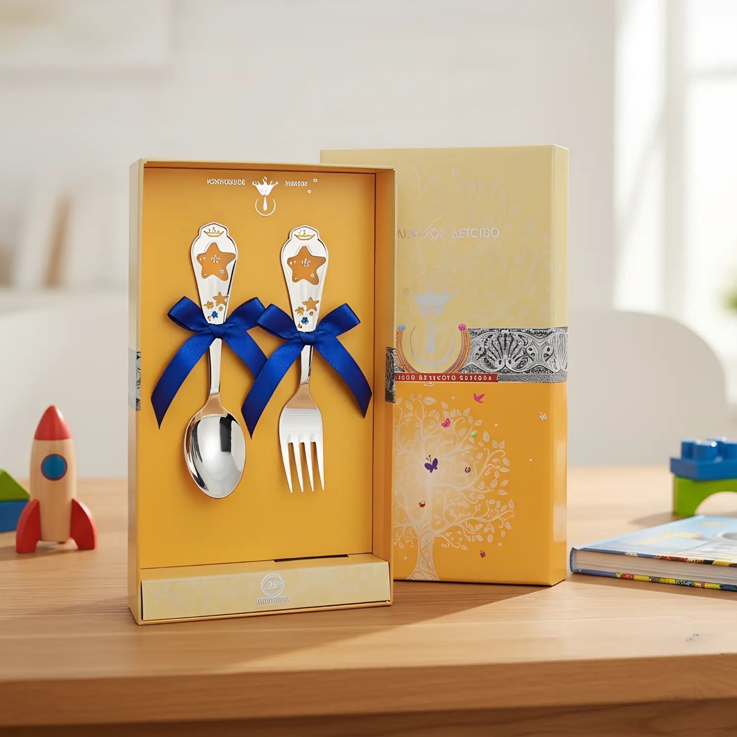 This children's cutlery set is a magical gift for a baptism , the birth of a child or as a lasting memory of a special moment in life - full of shine, color and meaning.
