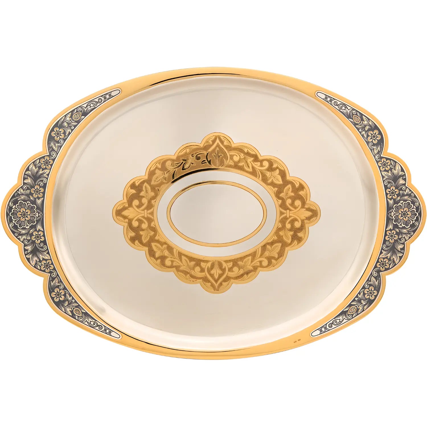 Silver tray 925 silver gold plated oval – Tsar's Feast Niello Design