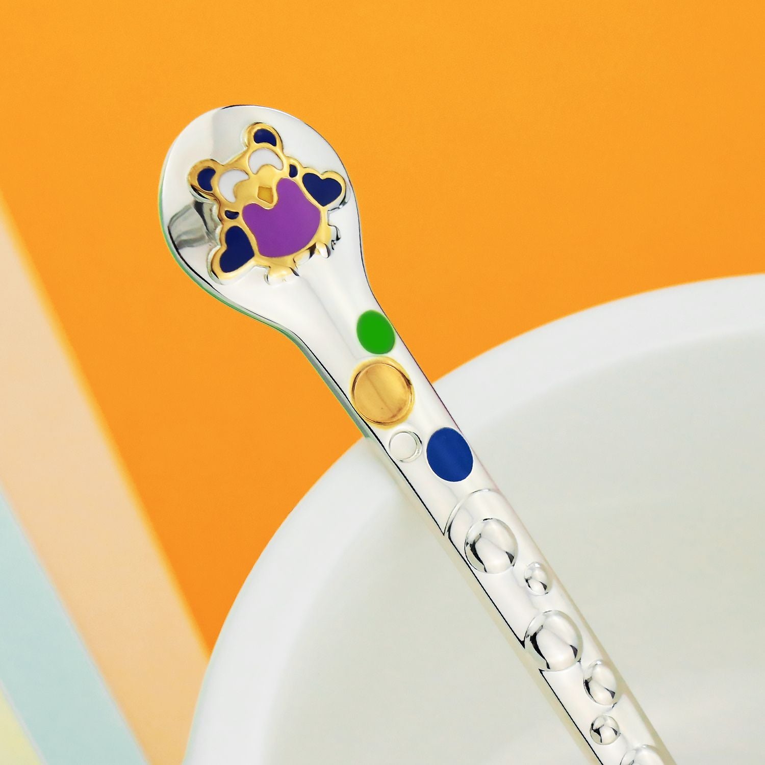 Эта прекрасно оформленная детская ложка украшена узором в виде совы и изготовлена из высококачественного серебра 925 пробы, известного своей прочностью и блеском. Красочная эмалевая сова на конце ручки ложки привлекает внимание и обязательно понравится детям. При весе 20 г ложка удобно лежит в руке, а размер 12,5 см идеально подходит для маленьких детских ручек. Эта ложка входит в нашу эксклюзивную коллекцию детских столовых приборов и поставляется в высококачественной подарочной коробке, что делает ее идеальным подарком.