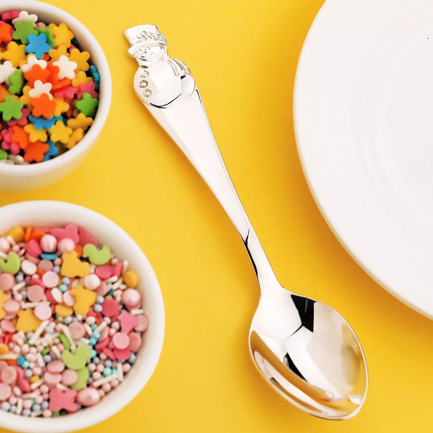 Детская ложка из серебра 925 пробы «Снеговик» — первоклассное дополнение к столовым приборам вашего ребенка.