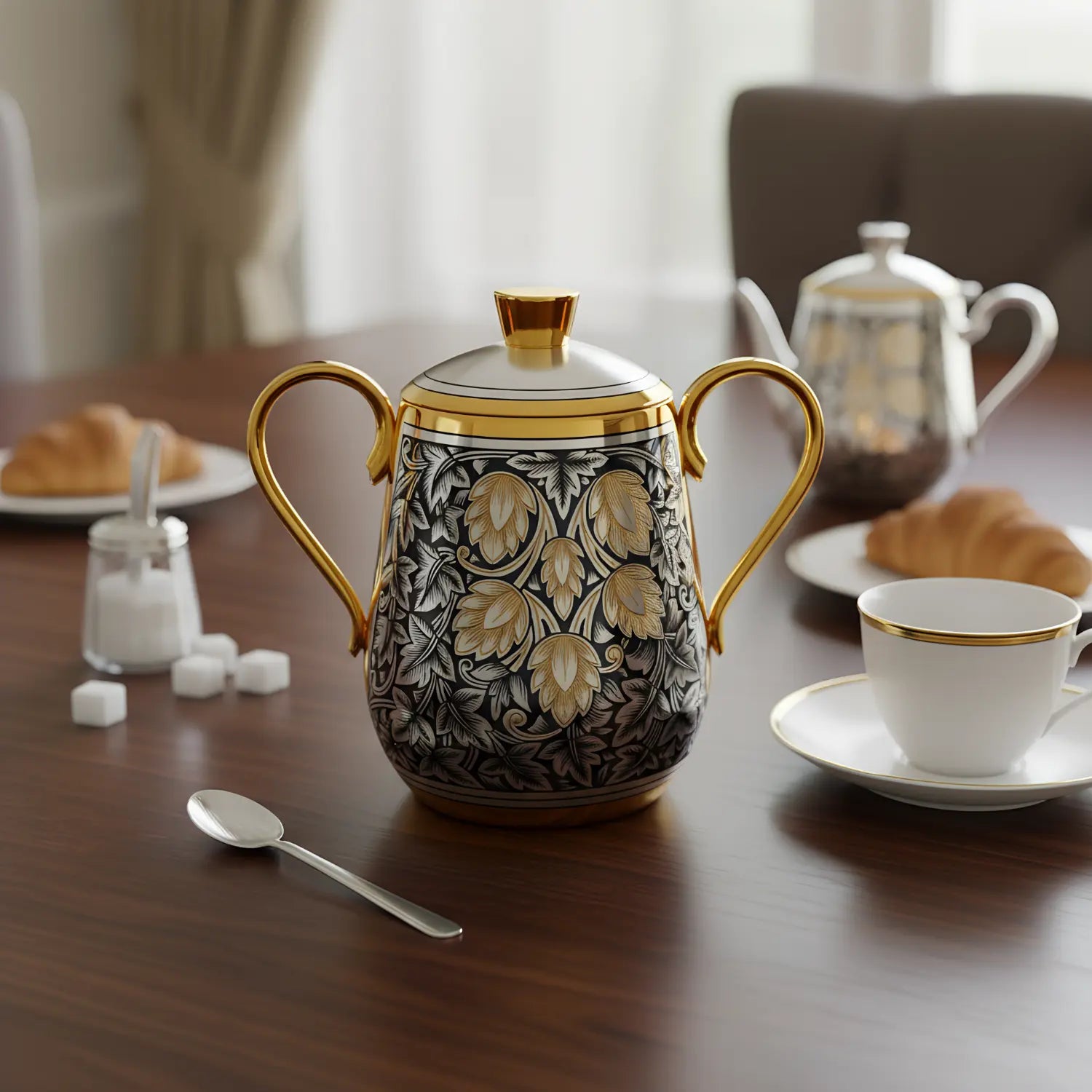 Эта сахарница идеально подходит для повседневного использования или для особых случаев, когда вы хотите произвести впечатление на своих гостей. Это не только практичный контейнер для сахара, но и стильный аксессуар, который добавит завершающий штрих вашему журнальному столику.