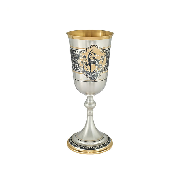 Бокал на ножке из серебра 925 пробы с позолотой Niello 175 мл
