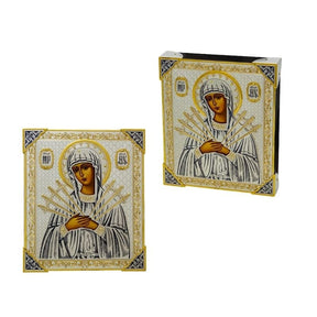 Православная и русская икона «Богоматерь Семистрельная» в ценной технике чернения