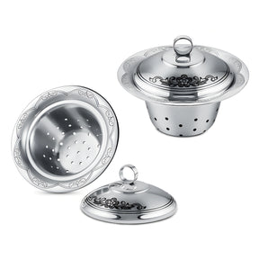 Художественная гравировка в традиционном стиле чернь придает ситечку для чая роскошный и неповторимый вид. Изящные детали делают его по-настоящему привлекательным на каждом чайном столе.